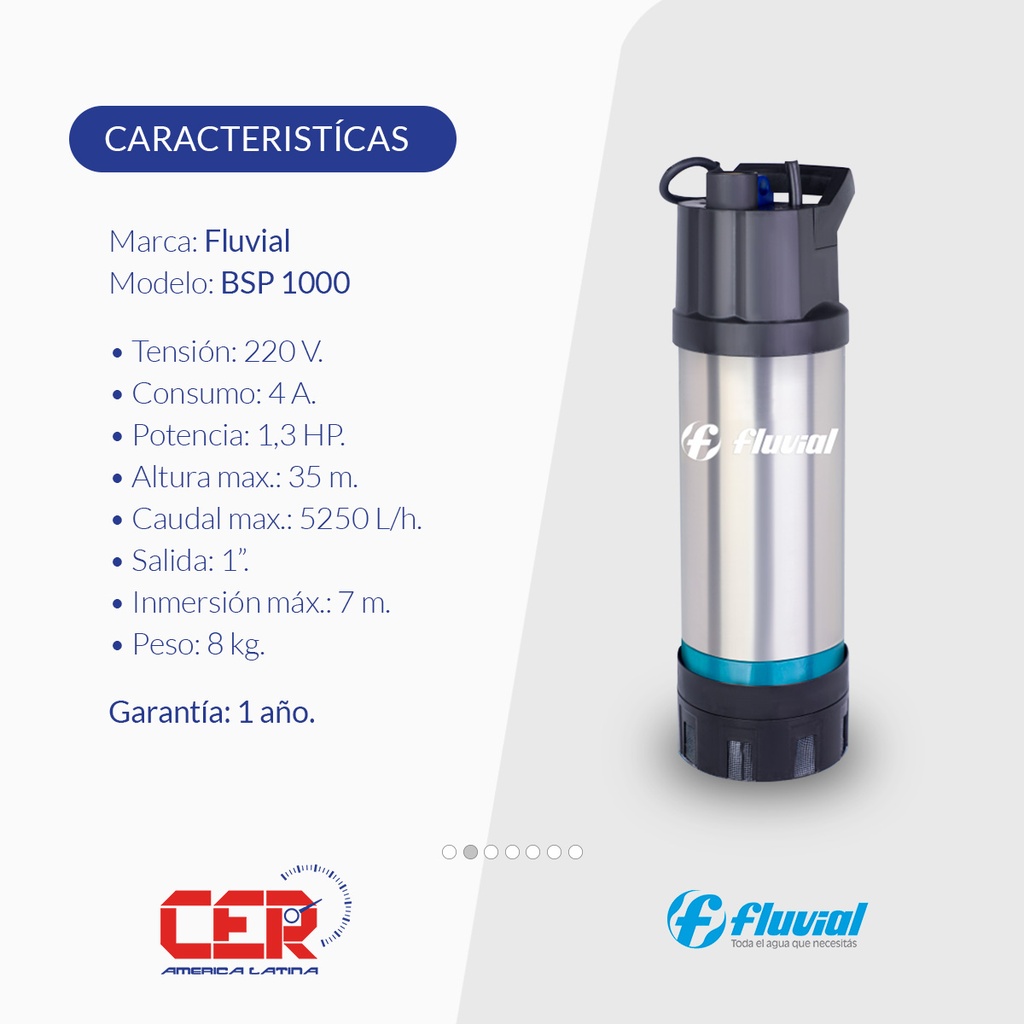 BOMBA PRESURIZADORA SUMERGIBLE FLUVIAL MODELO BSP 1000 HASTA 6 CONSUMOS - TANQUE CISTERNA