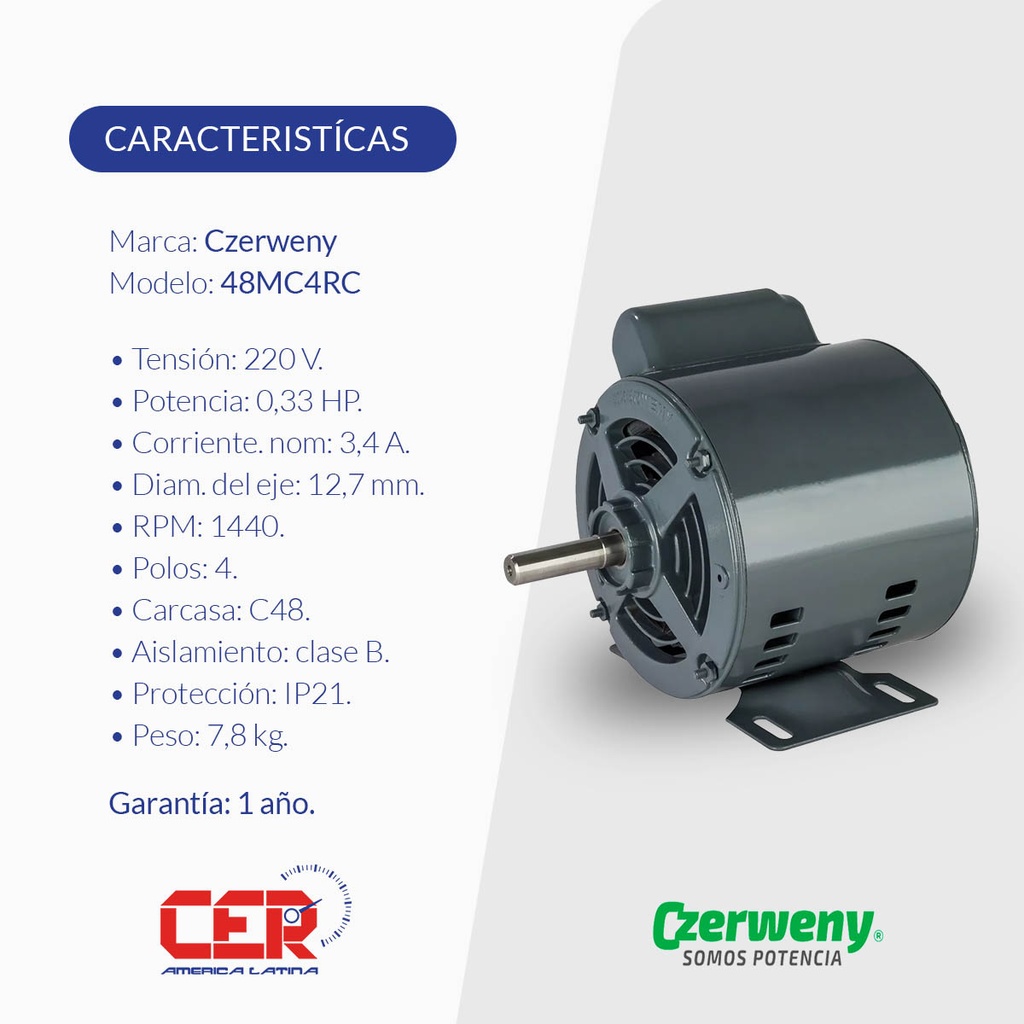 MOTOR CZERWENY MODELO 48MC4RC - 1500V - 0.33 HP