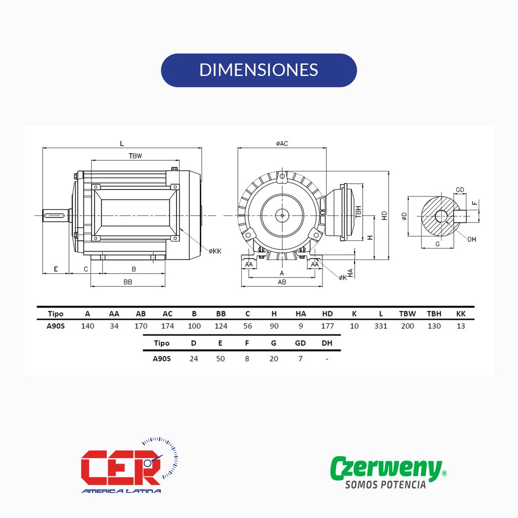 MOTOR CZERWENY ALTO PAR MODELO A90SMC-4A - 1500V - 0.5 HP