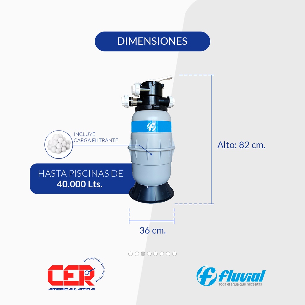 COMBO FLUVIAL BOMBA PLATA 2 + FILTRO TITANIUM 40 + CARGA FILTRANTE - PISCINAS HASTA 40.000 LTS
